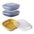 ざるの効果で蒸し器のようにご飯やシュウマイをふっくらおいしく解凍します。一人暮らしの方にはもちろん、少量からでも保存可能なのでぱぱっと使えてササッと洗えます。