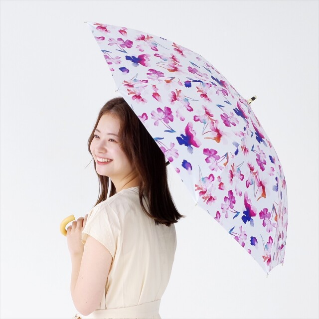 【晴雨兼用日傘】長傘 遮光ブリリアントフラワー55 PK/ピンク UVカット 熱中症対策 2417 niftycolors